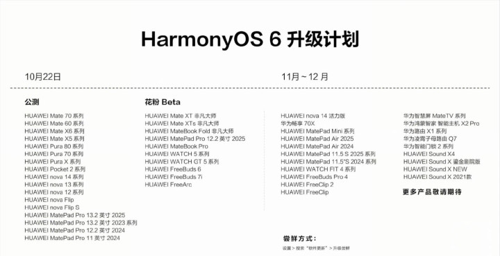 说回机型覆盖,这次可以升级的基本就是华为现阶段的主力战斗群:Mate60/70,Pura70/80,nova12/13/14,全员能下一步吃到 SP8 的完整体验。
