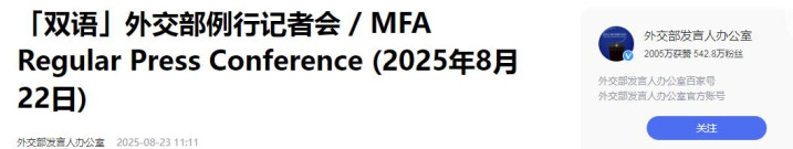 「双语」外交部例行记者会 / MFA Regular Press Conference (2025年8月22日)——外交部发言人办公室